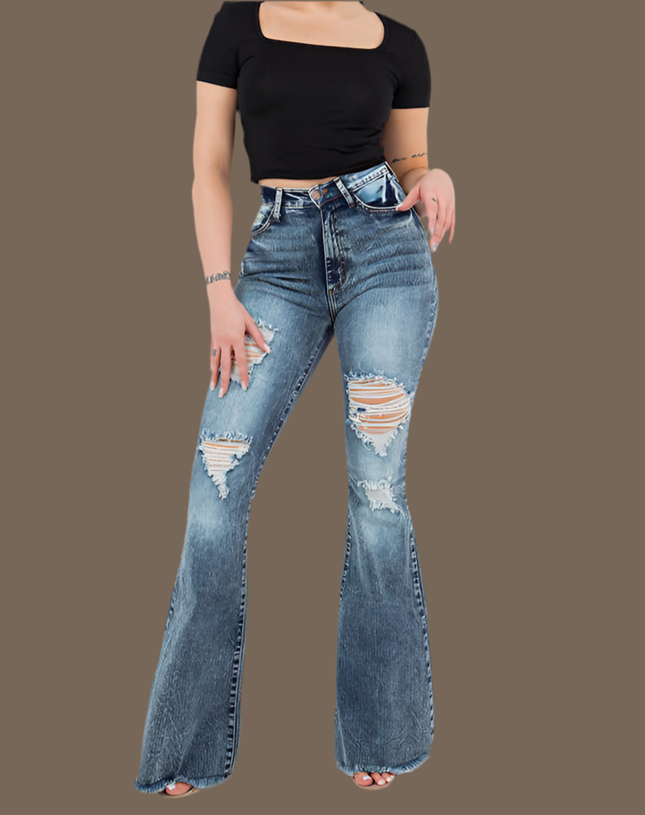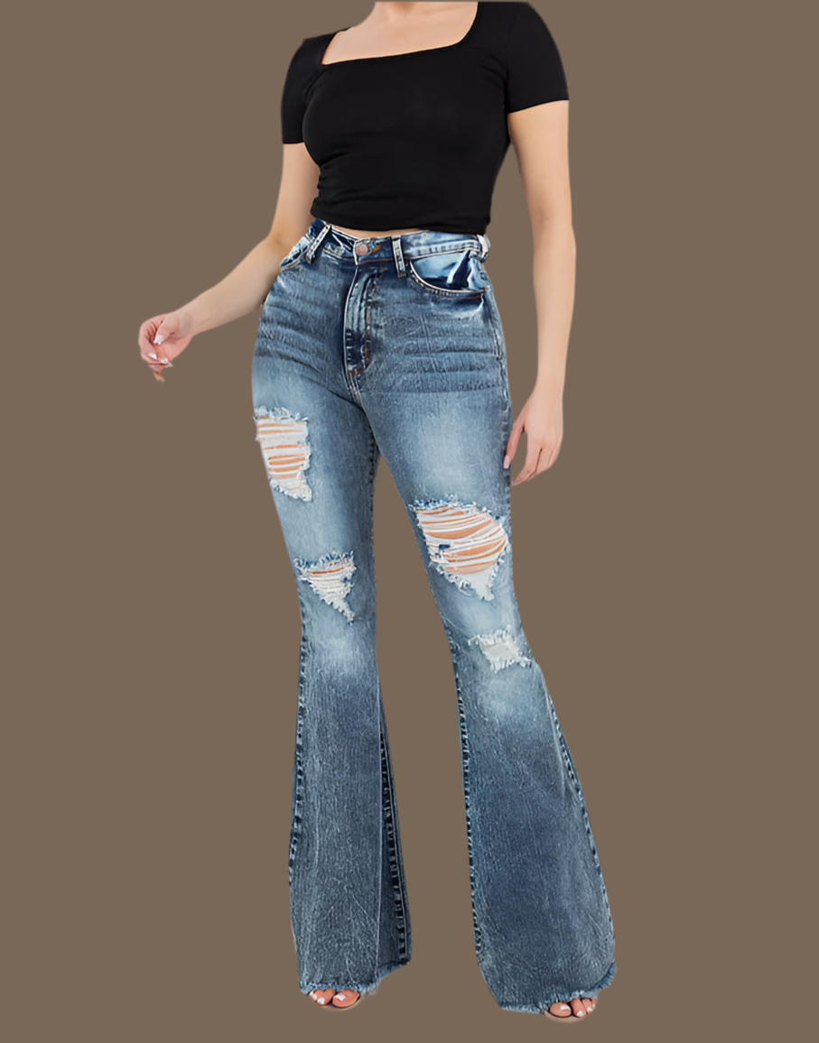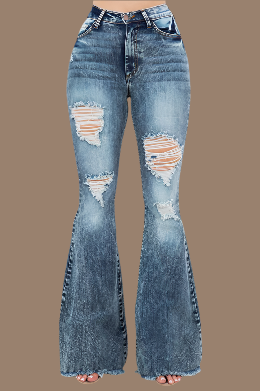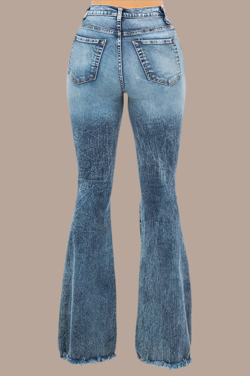 These Bell Bottom Jeans are made from a high-quality soft stretch fabric that offers exceptional comfort and style. With a 34" inseam, frayed hem details, and rip accents, along with front and back pockets, these jeans bring a trendy yet timeless flair to any outfit.