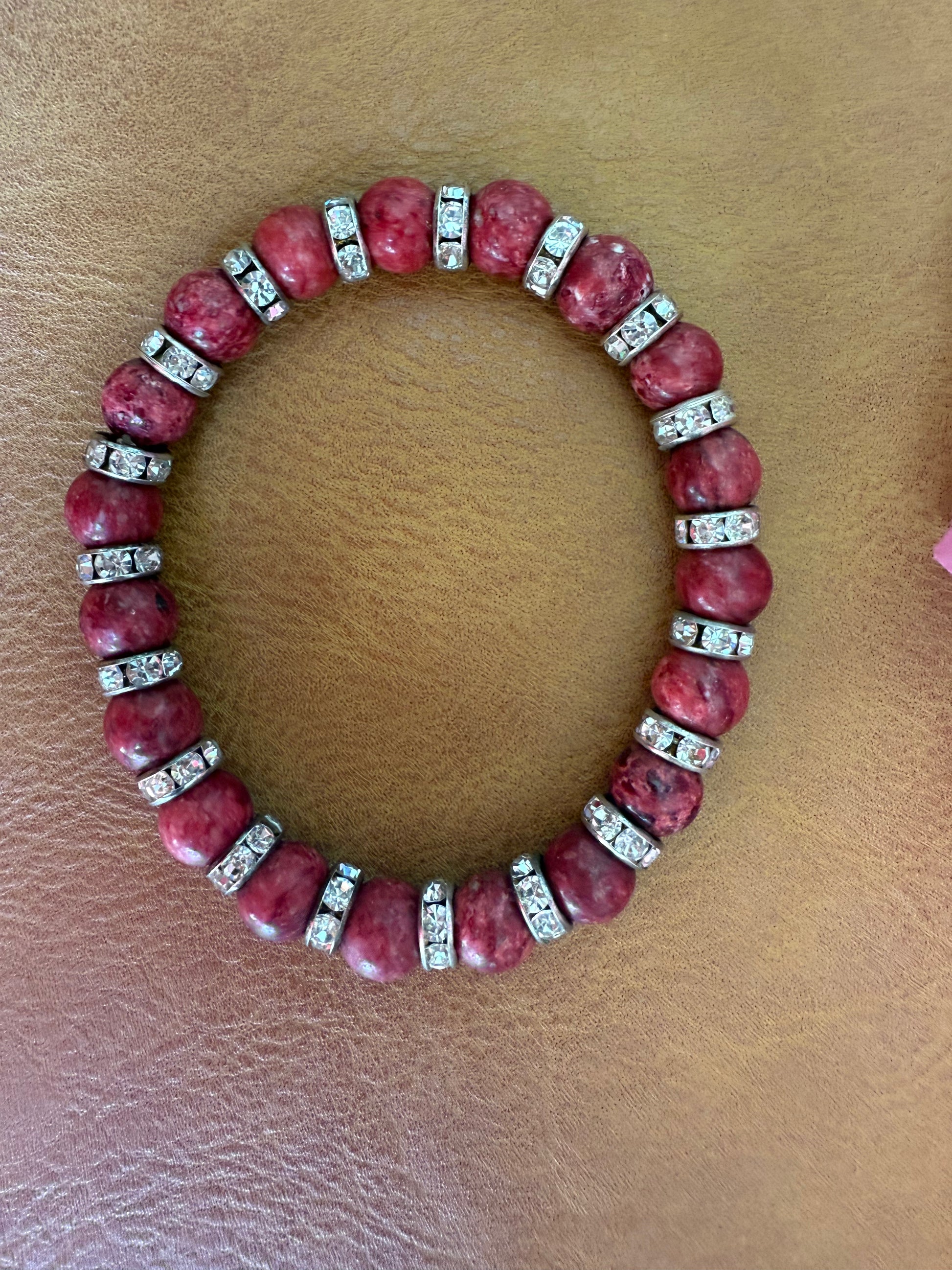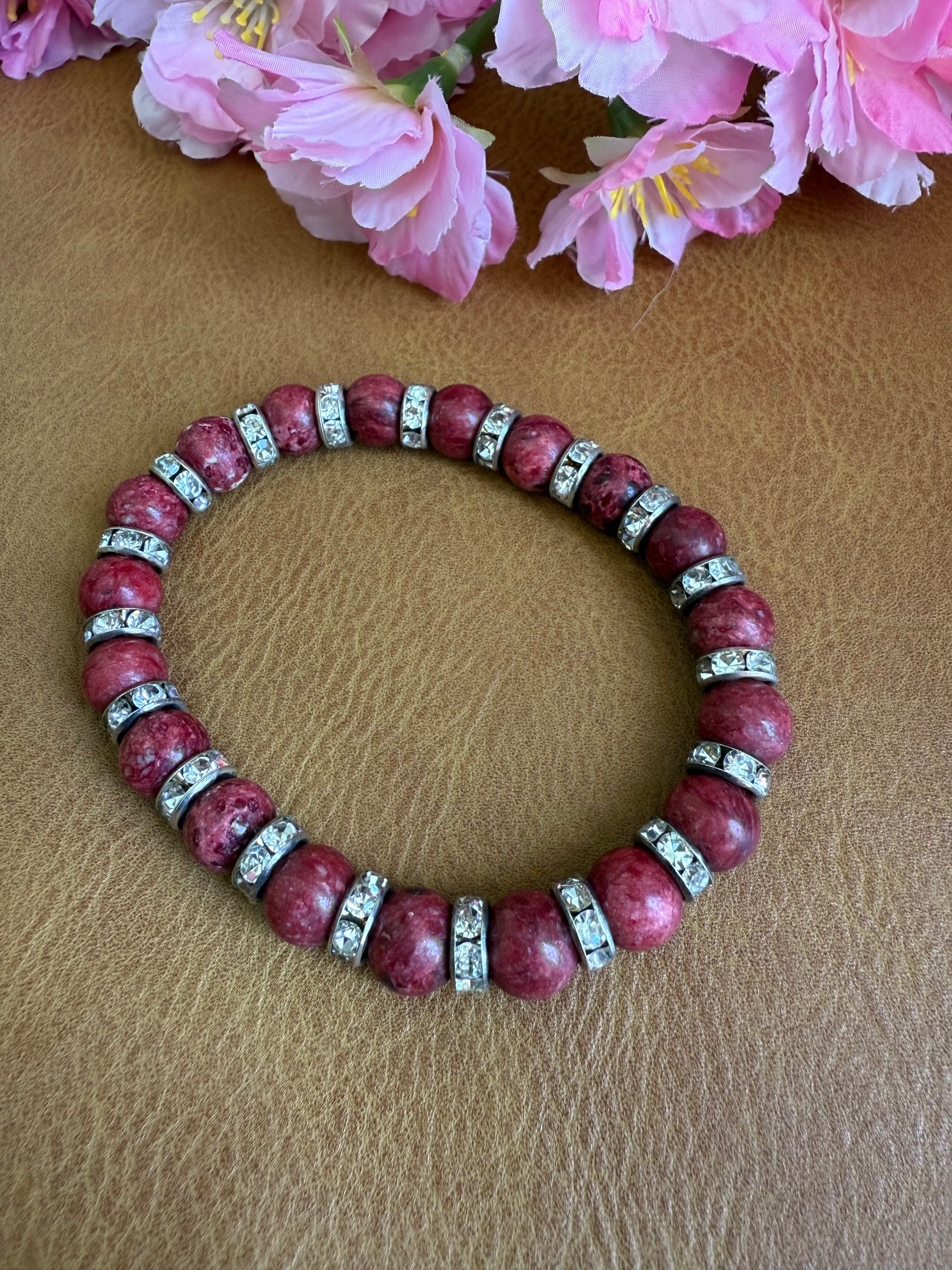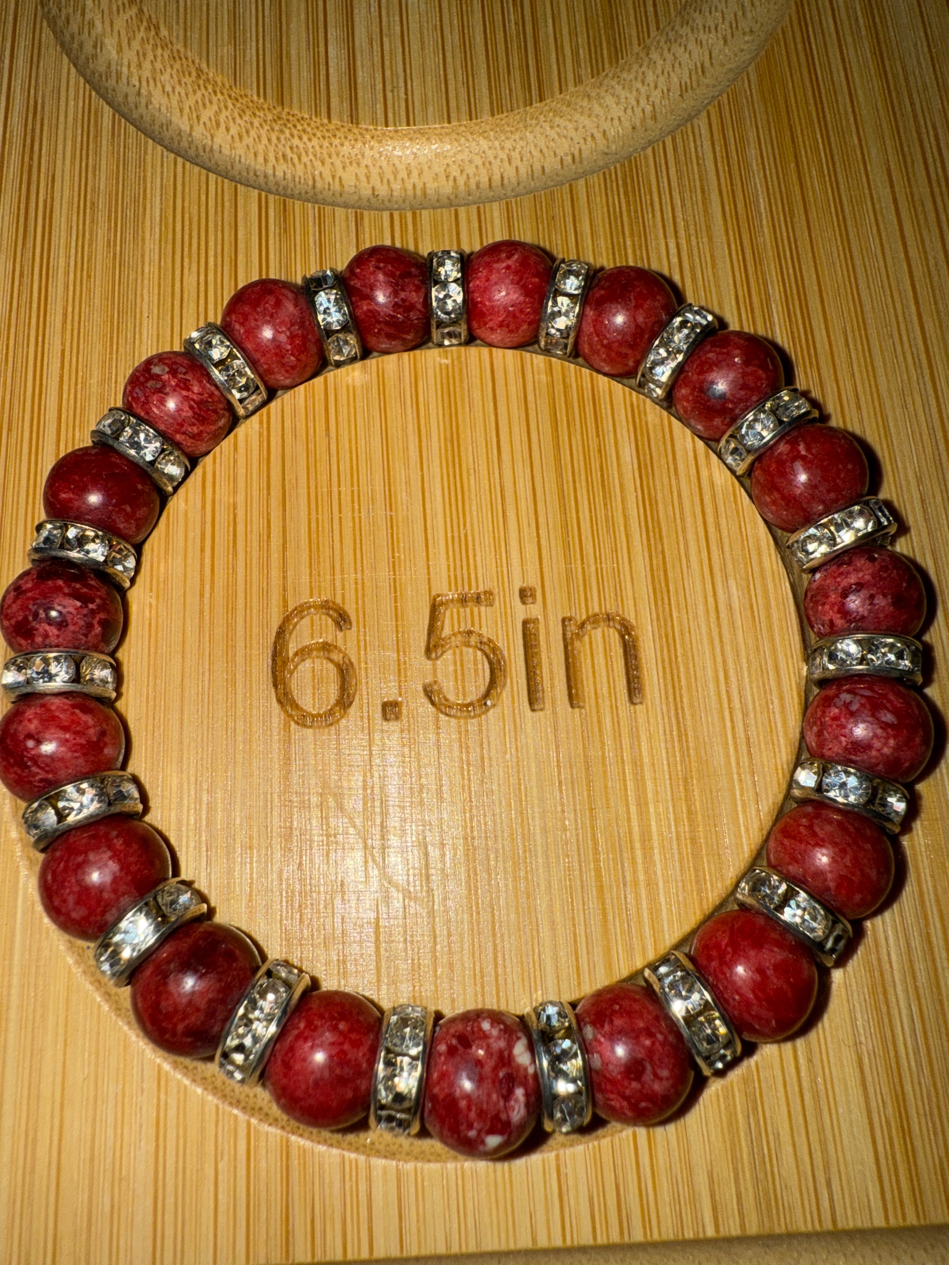 Sweet meets striking with this cherry-red beaded bracelet, accented by glimmering rhinestone spacers for the perfect touch of glam. The natural texture of the beads brings a grounded charm, while the sparkle brings the fun. At 6.5 inches, it offers a secure, comfortable fit — ideal for everyday wear or dressing up your wrist stack.