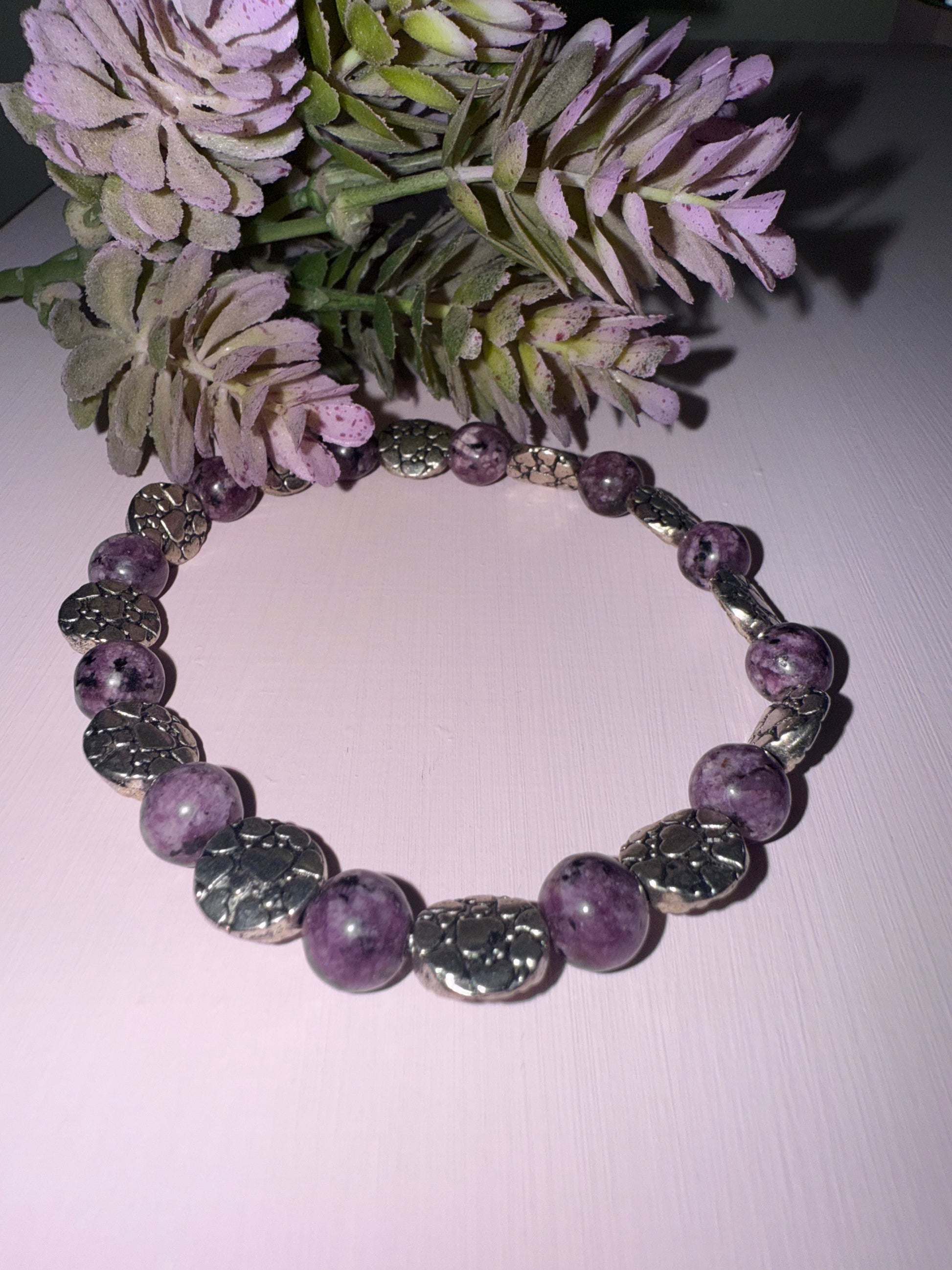 Lepidolite often referred to as the Stone of transition or the peace Stone.It is a gemstone believed to offer numerous benefits, especially when worn as a bracelet.